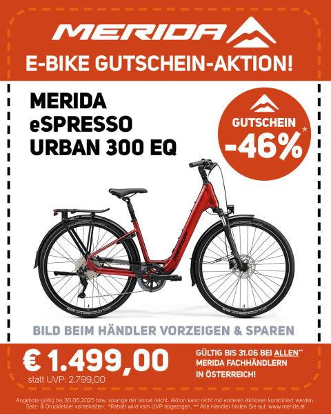 E-Bike Gutschein-Aktion! Sichere dir jetzt das brandneue Merida eSPRESSO URBAN 300 EQ zum sensationellen Aktionspreis!