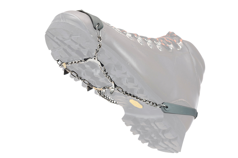 • 8 gehärtete Stahlspitzen für sicheren Halt auf eisigen und rutschigen Untergründen.